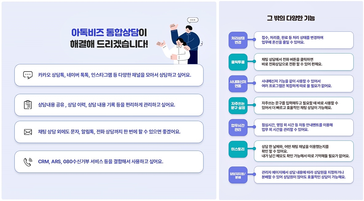 오늘 아톡비즈 통합 채팅상담의 기능과 장점을 소개해드리고 채팅 솔루션 도입으로 상담 업무를 개선한 사례도 이야기