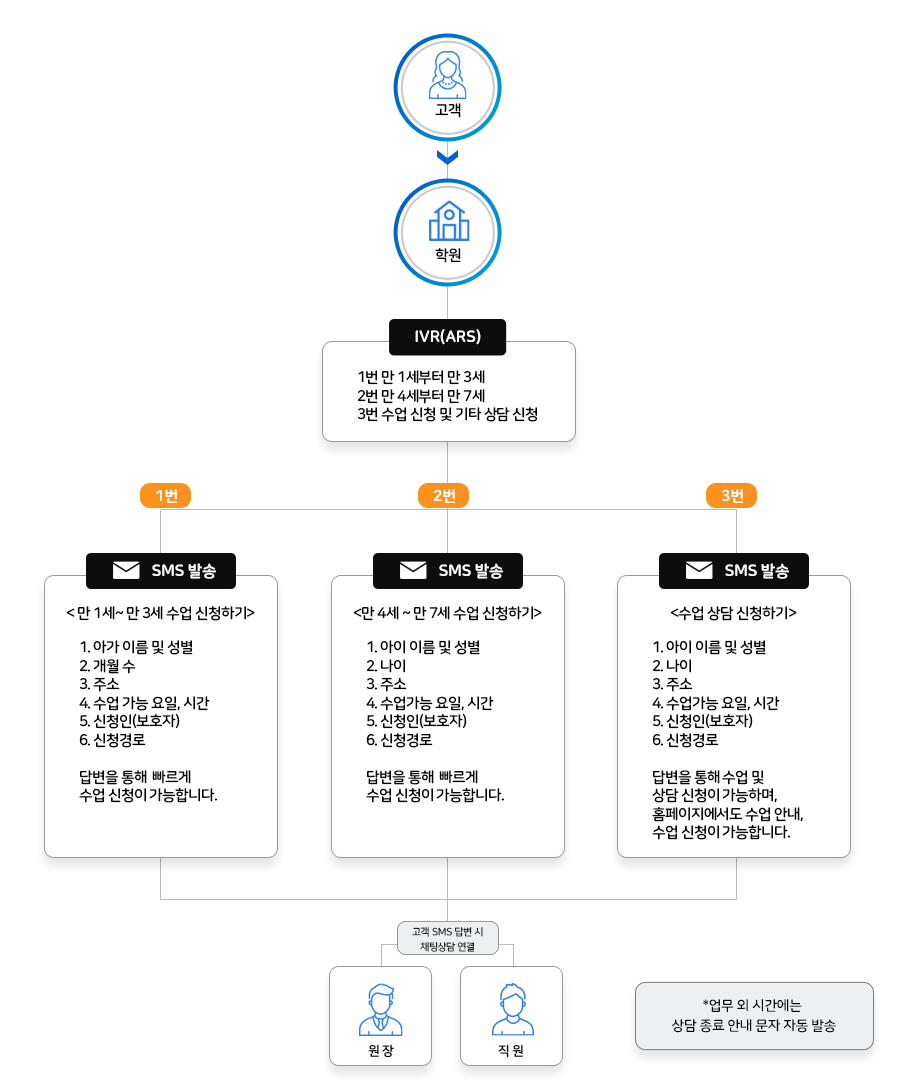 A 학원은 적은 상담 인원으로 전화상담을 받고 있어 다른 상담을 놓치는 일이 잦았으며, 학부모들을 대하는 업종 특성상 전화 상담 시간이 길어져 수업과 상담을 병행하기에 어려움이 있었습니다.