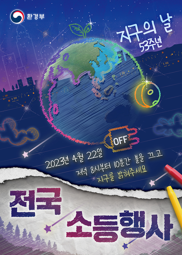 4월 22일 저녁 8시부터 10분간 전국의 공공기관, 기업, 지역명소, 각 가정에서 조명을 끄는 환경 캠페인입니다.