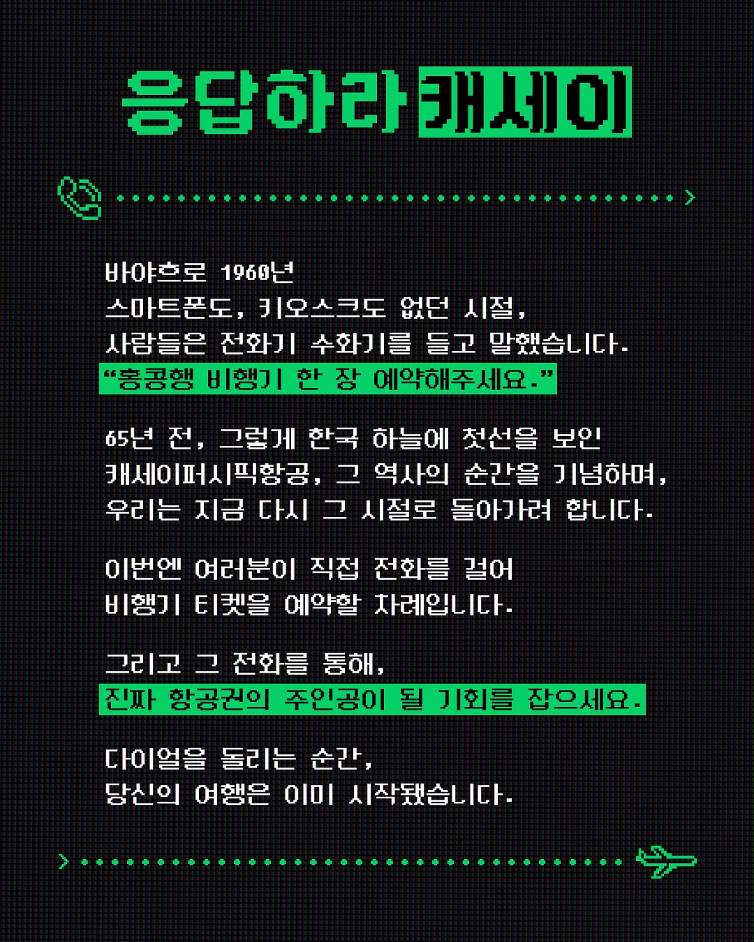 캐세이퍼시픽항공이 한국 취항 65주년을 맞아, 마치 1960년대로 시간 여행을 간 듯한 추억의 이벤트를 선보였습니다!