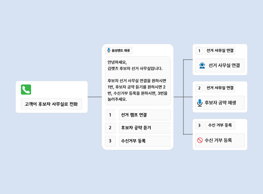 선거사무실 ARS는 선거사무실로 걸려오는 전화를 효과적으로 관리하면서, 후보님의 공약재생 등 홍보효과에도 도움이되는 ARS 시스템입니다.