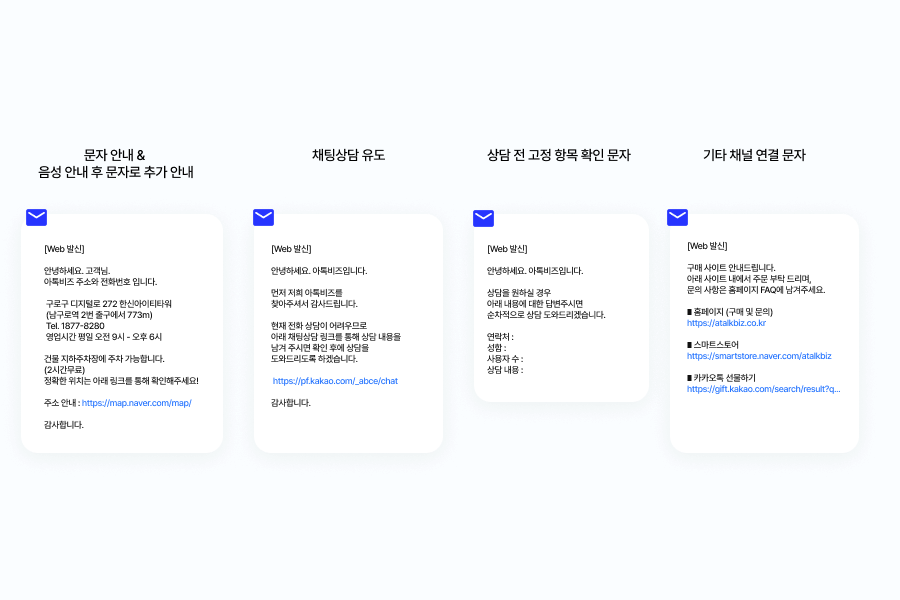 5. 기타 채널 연결 문자 - 자사 채널을 여러 개 운영 중일 경우 고객이 혼동하지 않도록 채널 안내