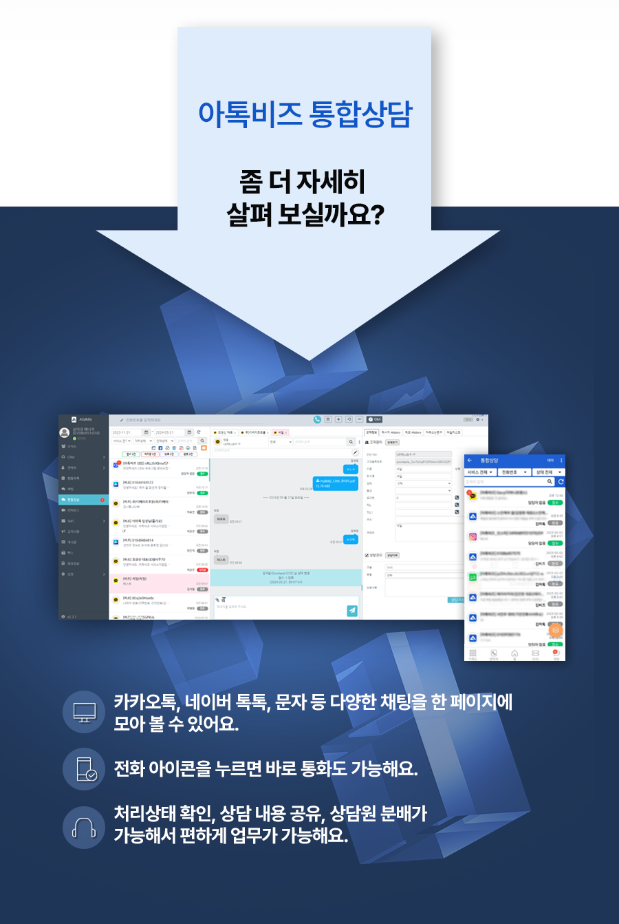 여러 채널의 채팅 상담을 쉽고 체계적으로 관리할 수 있게 도와주는 '아톡비즈 통합상담'을 소개해드릴게요.