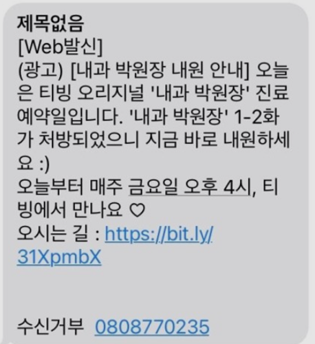 실제 극중 배우님의 실감나는 음원으로 시청자들의 기대감을 끌어들이고 병원 컨셉의 내원 예약안내 문자로