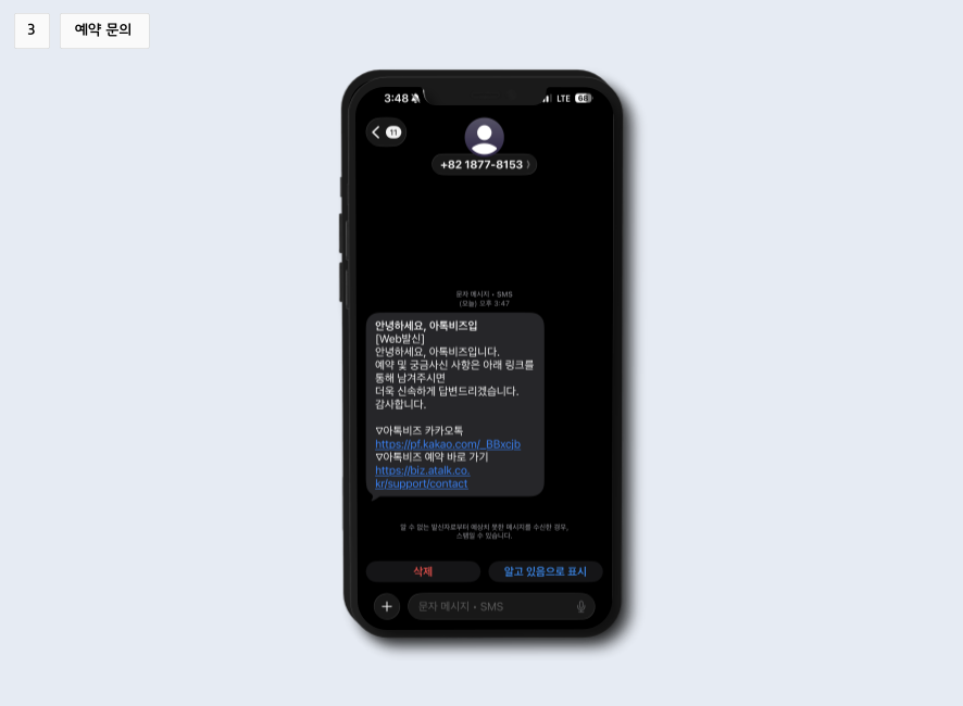 URL이 포함된 상세한 안내를 문자메시지를 자동으로 발송해 예약 안내를 할 수 있어요.