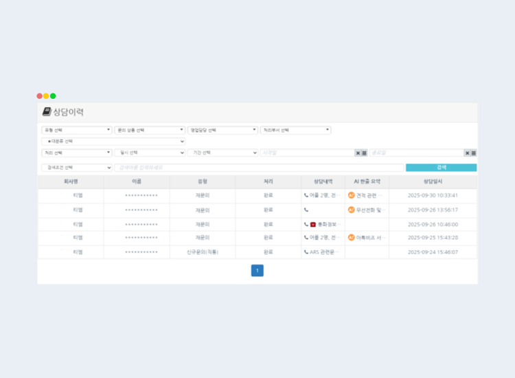 【 CRM : 상담관리 】··········고객과 상담 시 상담 이력을 하나의 화면에서 한 번에 보고 싶어요