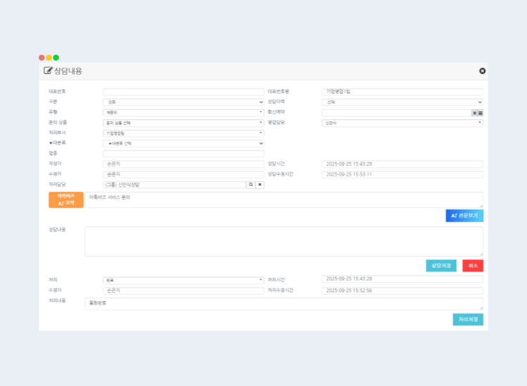 저장한 상담 내용은 고객에게 전화가 오거나 검색 시 한 번에 조회할 수 있으며,