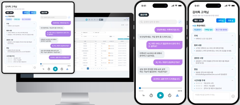 또한, AI 기반 STT 서비스는 통화 내용을 자동으로 텍스트로 변환하고 요약, 키워드 추출, 검색 기능을 지원하여 상담 업무의 효율을 크게 높여드립니다.