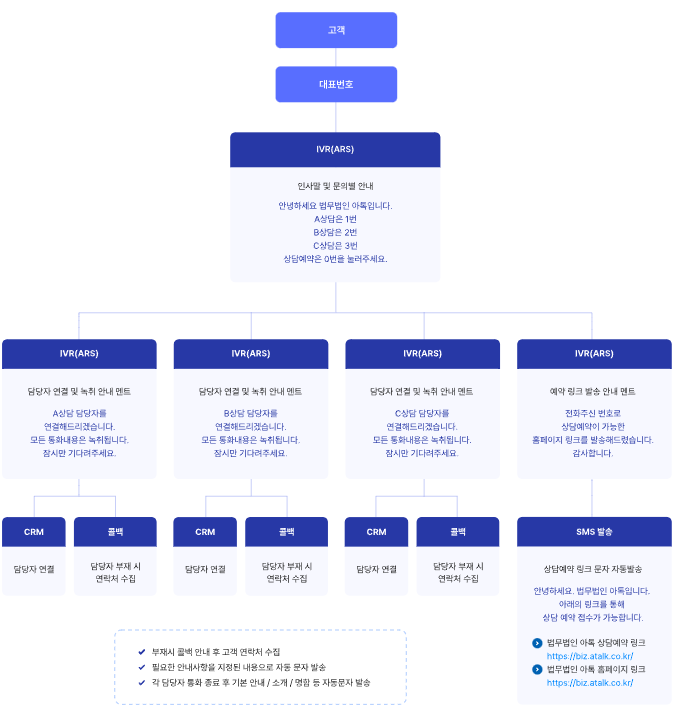 변호사, 변리사, 세무사, 회계사, 노무사 등의 업종에서 활용되는 ARS 구성 예시