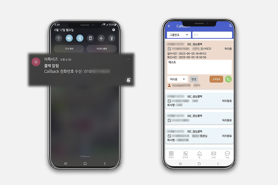 아톡비즈 콜백은 모바일에서도 동일하게 적용이 되기 때문에 사무실에서 근무를 보는 상담원 뿐만 아니라
