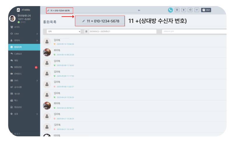 다시말해 (11 + 상대 수신자 번호) 를 입력하면, 고객 핸드폰 수신 화면에는 원하는 대표 번호가 표시돼요.