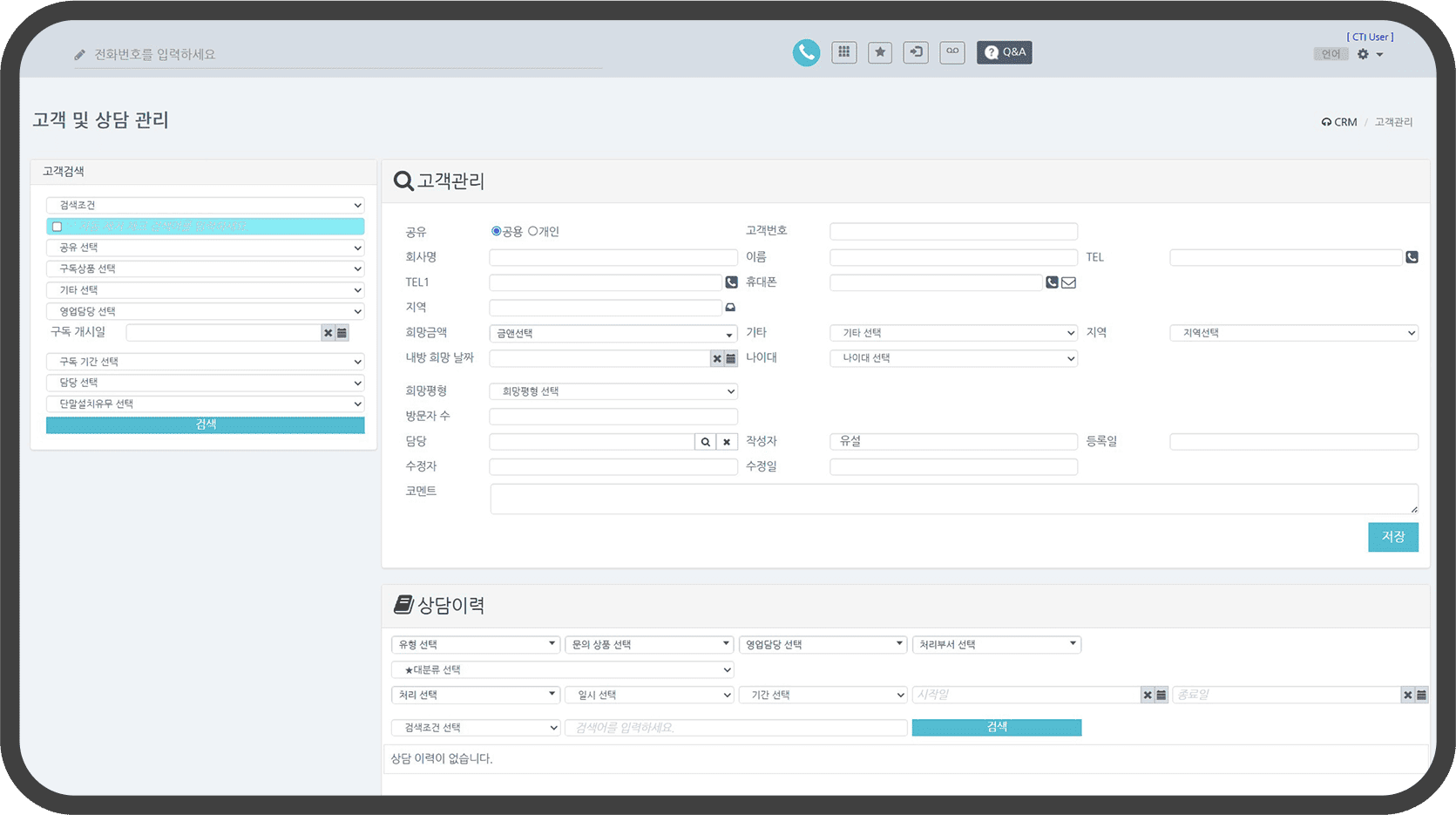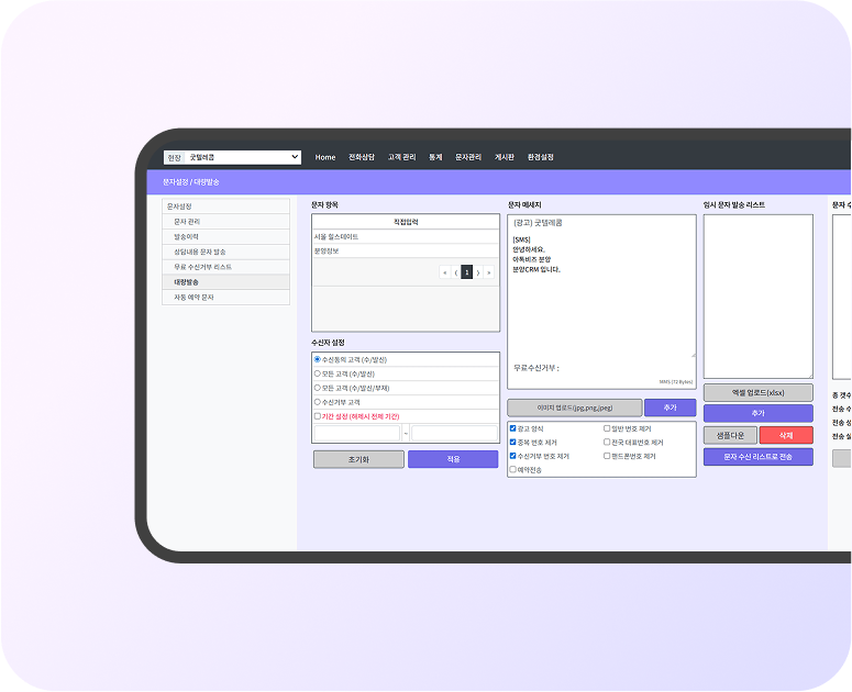 고객 DB 관리부터 상담이력관리, 통계 등 소량, 대량 고객 등록 과 같은 고객관리를 경험하세요.